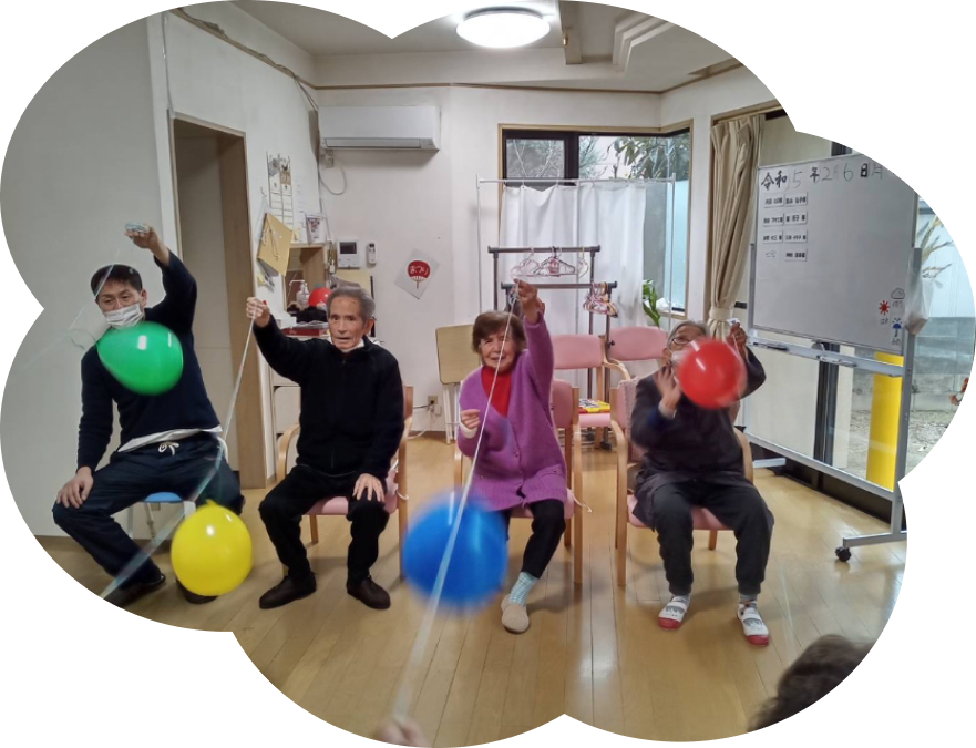 毎日、利用者様のペースに合わせて、機能訓練やレクリエーション活動をしております。
